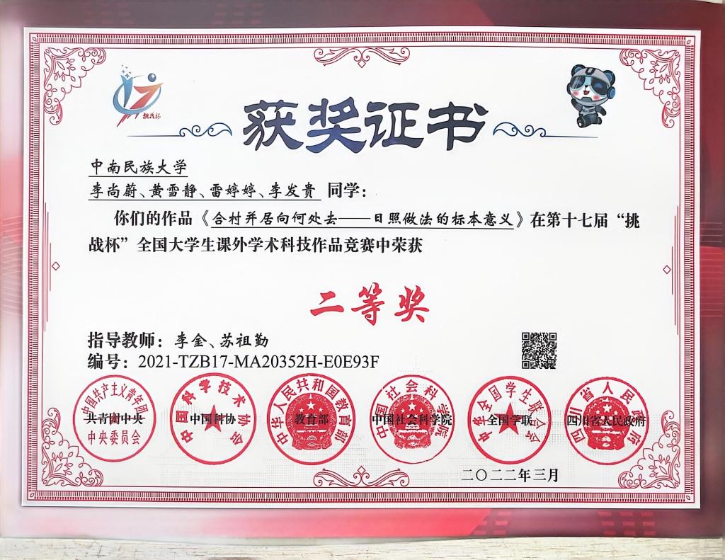 获第十七届“挑战杯”全国大学生课外学术科技作品竞赛二等奖。学院供图