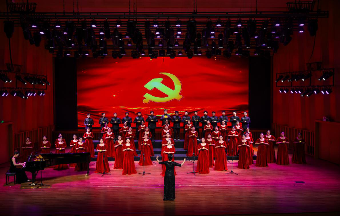 学生倾情合唱《唱支山歌给党听》。学院供图